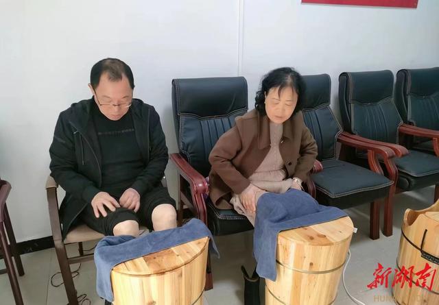“平時沒事就來這里做做足療和頭療,血液循環都更加通暢了,全身心都得到了很好的放松?!?1月21日,在新晃晃州鎮中山門社區居家養老服務中心,居民楊大爺正在和朋友們享受龍腦足部熏蒸理療項目。