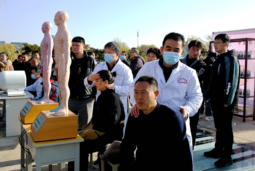 活動現場,中醫義診區省市縣知名中醫專家現場把脈問診,開展中醫體質辨識、疾病診斷、病情咨詢等,辨證施治,免費為游客群眾提供個性化的治療和調理方案;中醫特色文化體驗區運用舌診儀、脈診儀、針灸經絡教學模擬人等設備組織學生現場教學互動;中醫非藥物療法體驗區現場免費提供針灸、刮痧、耳穴壓豆、火龍罐、平衡罐、頸肩按摩康復等中醫特色技術類項目,吸引了許多游客群眾的目光;更有許多專業志愿者現場講解、解答問詢中藥類實體標本300種,以及圖文并茂的養生食譜配方、藥酒配置配方,讓在場所有的游客群眾滿載而歸。