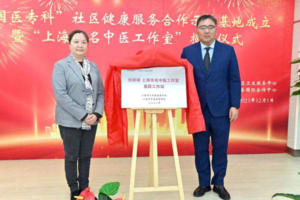 日前,上海中醫藥國際服務貿易促進中心與上海市普陀區桃浦鎮社區衛生服務中心在桃浦鎮第二社區衛生服務中心合作建立“國醫??啤鄙鐓^健康服務示范基地,張婷婷主任的“上海市名中醫工作室基層工作站”同時揭牌。