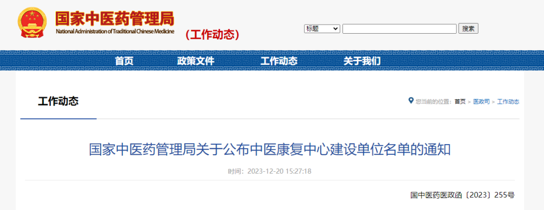 國家中醫藥管理局公布中醫康復中心建設單位名單