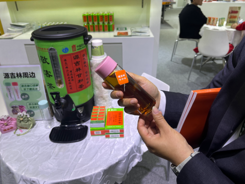 展臺區,處處點綴傳統元素和中醫藥文化元素,比如精美的源吉林香囊,還有多款獨具匠心的特色新品,展現德眾源吉林守正創新的形象和精神。德眾藥業在源吉林甘和茶的基礎上減方制成了源吉林罐裝涼茶植物飲料,既打造了老字號品牌的新形象,又擴大了德眾源吉林的品牌受眾范圍,讓這一老字號藥茶在飲料領域煥發新的活力。