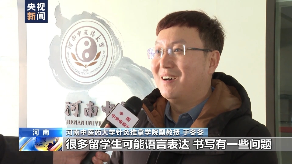 河南中醫藥大學針灸推拿學院副教授于冬冬:很多留學生可能語言表達、書寫有一些問題,而無名的中文表達還有書寫,像我們研究生要撰寫論文,在這方面幾乎和中國學生沒有太大的區別。