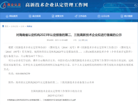 認真深耕自我,喜訊悄然而至。2023年12月8日,全國高新技術企業認定管理工作領導小組辦公室發布《對海南省認定機構2023年認定報備的第二、三批高新技術企業擬進行備案的公示》,經過層層的嚴格評審,榕樹家憑借著自身在中醫藥領域出色的創新能力、研發技術、團隊實力與發展潛力,成功被認定為國家高新技術企業。