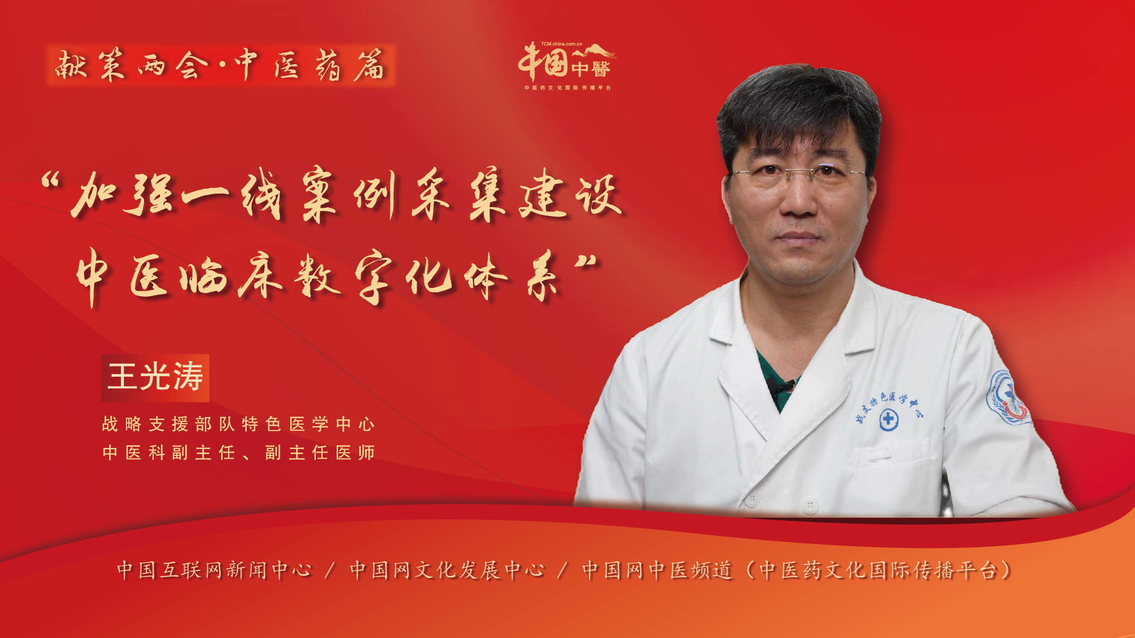 中醫藥是中華傳統文化的智慧結晶。中醫藥診療體系的發展完善來源于中華民族對自然與生活最樸素的探索,來源于一線醫生從萬千病例中為后人總結出的有效經驗與技巧。全國兩會前夕,戰略支援部隊特色醫學中心中醫科副主任、副主任醫師王光濤接受中國網中醫頻道專訪,就中醫骨傷科近年的發展淺談對未來中醫發展狀況的期望,并從一線醫生的角度,建議有關部門能夠推進針對一線醫務工作者實際,做好病理和病例數據的統計、整理,推動中醫臨床數字化體系建設,更好提高一線醫生診療水平,更好服務人民健康。
