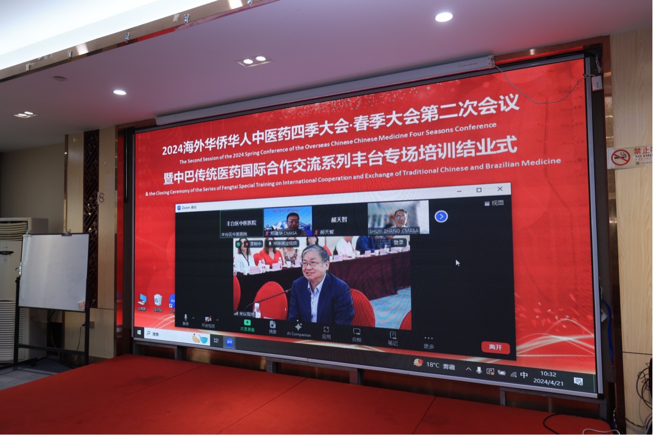 中國網中醫訊 4月21日,2024海外華僑華人中醫藥四季大會-春季大會第二次會議暨中巴傳統醫藥國際合作交流系列活動-豐臺專場結業活動在豐臺區舉行。北京市中醫管理局局長屠志濤,北京市豐臺區區委衛生健康工委書記、豐臺區衛生健康委主任牛倉林,北京市豐臺區中醫醫院院長王小年,巴西中草藥學院院長Paulo等出席會議。