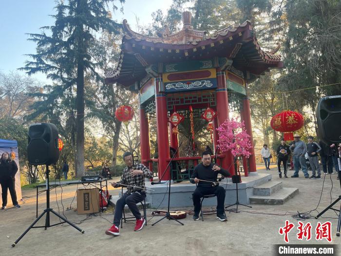 當地時間7月14日 智利圣地亞哥市 兩位中國民樂愛好者在中國文化展上演奏