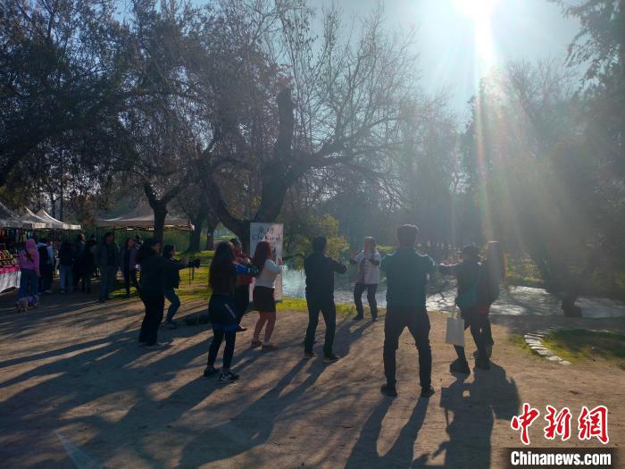 當地時間7月14日 智利圣地亞哥市中國公園 智利民眾體驗太極