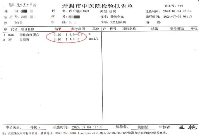 河南新鄭的李叔叔今年61歲,23年10月體檢時發現血糖升高,未規范治療。今年6月,李叔叔出現口干渴、多飲、多尿、雙手瘀脹、入睡困難、易煩躁等癥狀,測空腹血糖14.2mmol/L,遵醫囑服用二甲雙胍治療。服藥第四天,了解到國家區域華中中醫內分泌診療中心、開封市中醫院龐國明教授團隊多年來一直運用純中醫治療糖尿病,在全國范圍內具有較大影響力,立即停藥趕往開封尋求中醫治療。