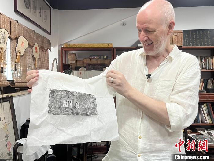 7月29日 盧克在武漢荊楚金石博物館體驗金石傳拓技藝