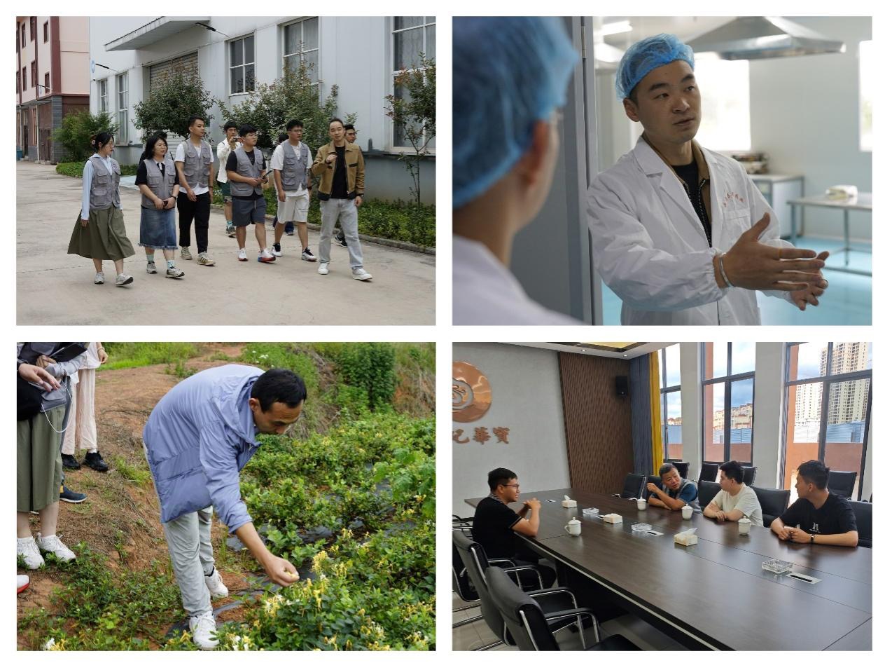 在探索中藥產業發展的廣闊道路上,企業扮演著不可或缺的角色。為了深化對中藥材產業鏈的認識,實踐團訪問了云南泰華豐功藥業有限公司、茨菇壩金銀花種植示范基地以及云南世紀華寶醫藥產業開發有限公司,進行了實地調研與學習。通過走訪這些具有代表性的企業,成員們獲得了從種植、加工到生產的中藥材產業鏈全景式認知。調研過程中,成員們與企業負責人深入了解了各環節的關鍵技術和管理經驗,對中藥材產業的運作模式和發展潛力有了更全面的理解。
