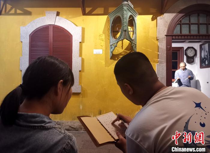 觀眾在膠濟鐵路博物館體驗“劇本殺” 交流劇本內的謎題