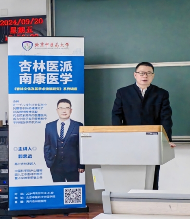 9月20日,《中醫藥杏林文化及其學術流派研究》系列講座暨北京中醫藥大學廬山杏林文化研究項目中期報告會在北京中醫藥大學舉行。此次講座以“杏林醫派與南康醫學”為主題,再興杏林發起人、中國科學院廬山植物園九江市杏林中醫藥重點實驗室榮譽主任郭思遠主講,北京中醫藥大學國學院院長李良松教授主持,由北京中醫藥大學主辦,北京中醫藥大學國學院、國學與傳統醫藥中外人文交流研究院承辦。