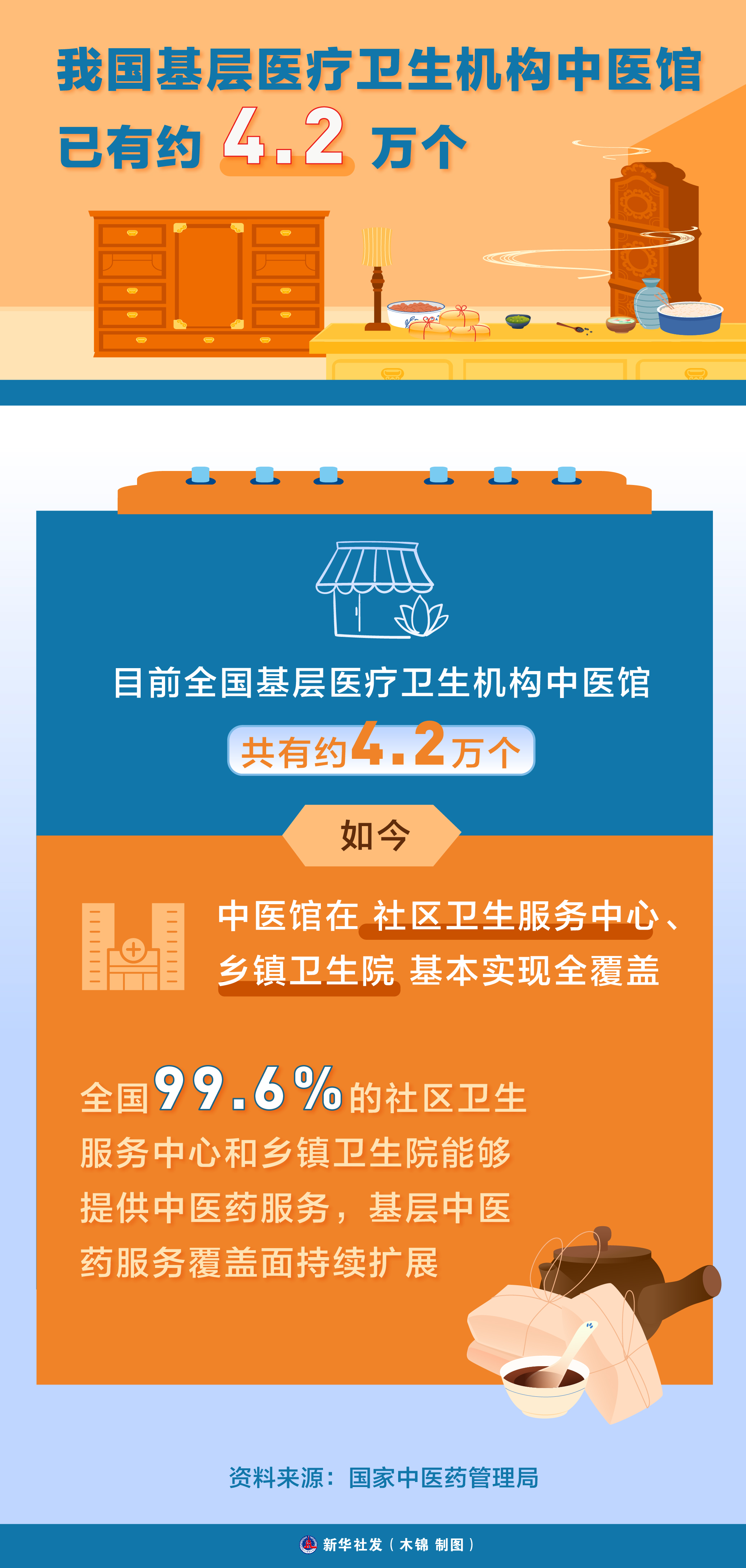 ??新華社北京2月14日電(記者田曉航)記者從國家中醫藥管理局14日舉行的新聞發布會獲悉,目前全國基層醫療衛生機構中醫館共有約4.2萬個,中醫館成為群眾身邊的健康“守門人”。