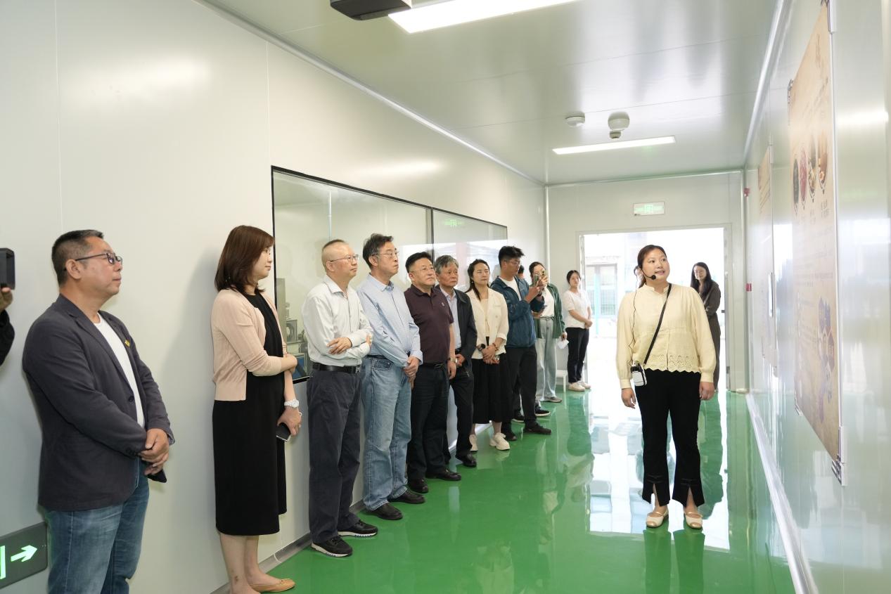 圖為與會嘉賓走進江蘇七〇七天然制藥有限公司非遺文化傳承走廊與質控中心