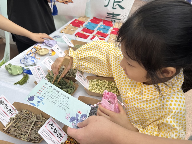 小朋友體驗“中藥香囊DIY”(央廣網記者吳馨驊)
